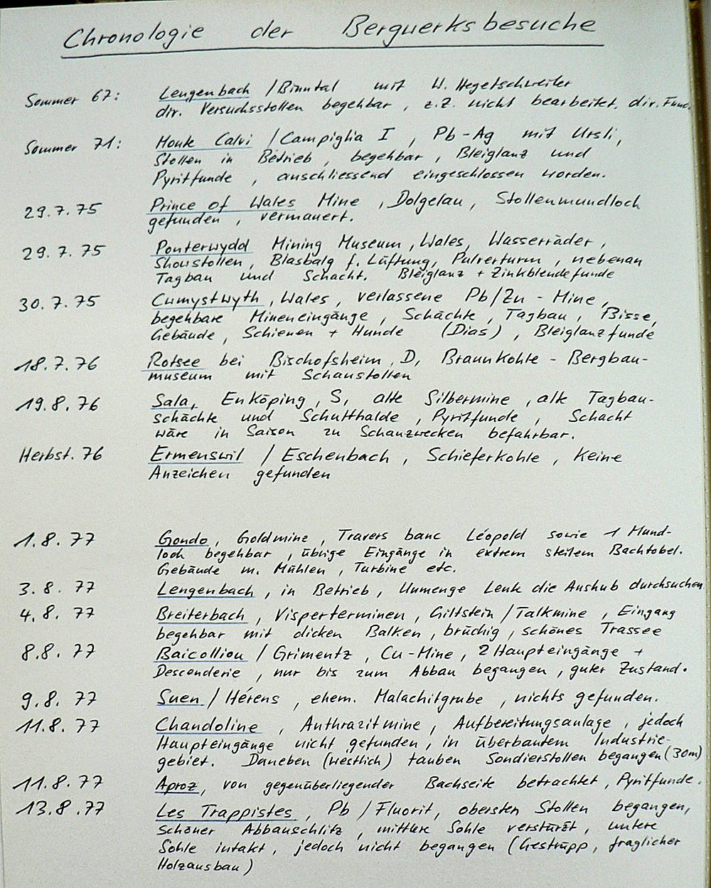Auszug aus dem Besuchs - Tagebuch in den 70er-Jahren